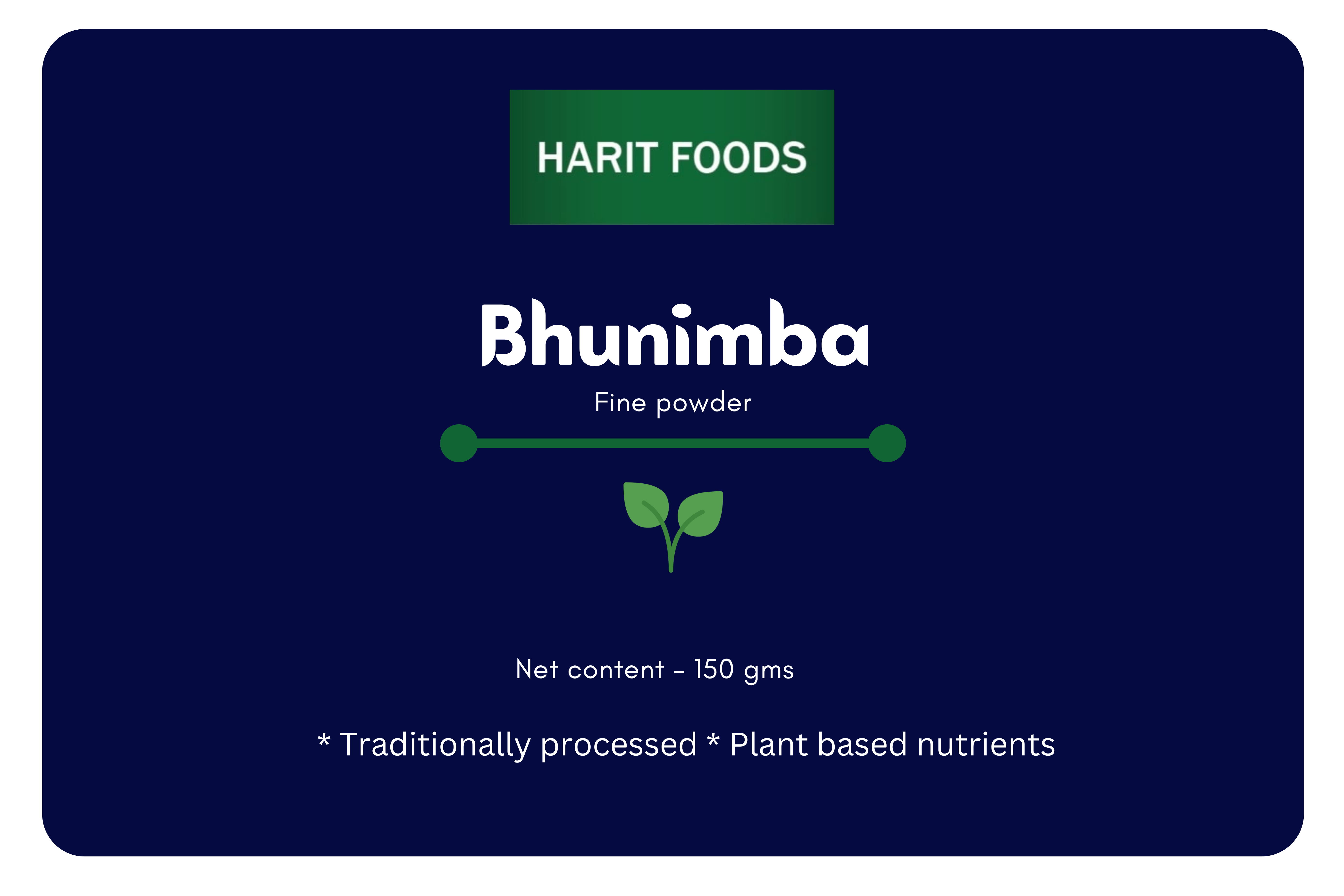 Bhunimba, derives its name from the Sanskrit word “Bhunimba”, meaning “the one who purifies the body”, due to its powerful detoxifying properties. Native to India and widely found in tropical and subtropical regions, it thrives in moist, well-drained soils. This herb is renowned for its ability to treat bacterial infections such as diarrhea, stomach pain, and respiratory infections like fever and sore throat. Kalmegh also has significant liver-protecting qualities, helping to manage conditions like hepatitis. This product is in powder form. Store it in a container to extend its shelf life. Keep it in a cool and dry place. This product does not contain any colour or taste enhancers.